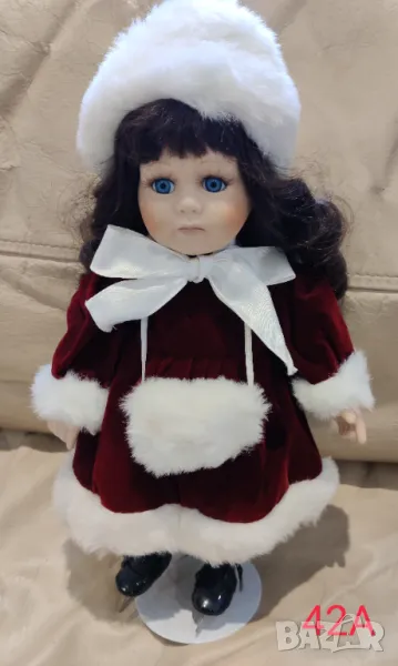 Порцеланова кукла с височина 37 см. Със стойка.