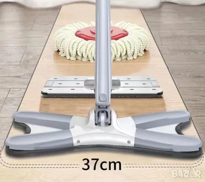 Уред с микрофибърна подложка за миене на под / Глава на моп: 32 * 14,3 cm; Дължина на уреда- 140 см; Абсорбация – 10 секунди; Функция – може да се използва за дърво, мрамор, плочки, стъкло; Микрофибърната подложка може да се пере в пералня – бързо и лесно.