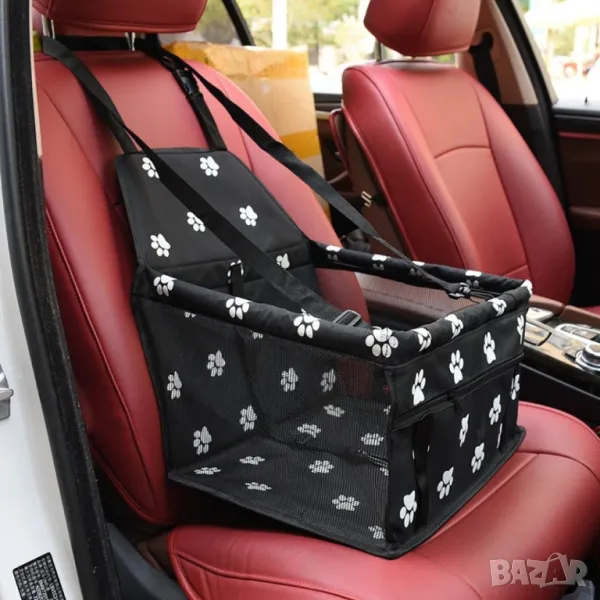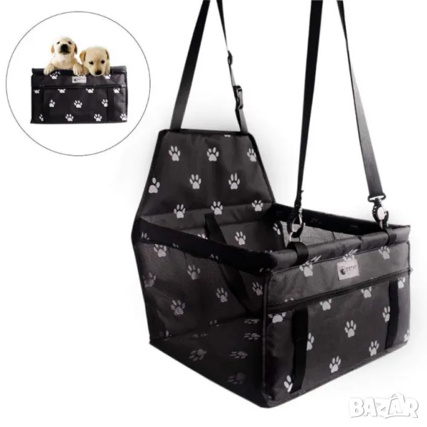 Седалка за куче, за кола P E T L I F E / Цвят: Черен/ Предотвратява движението на кученцето в автомобила по време на шофиране и отклоняването на вниманието на шофьора, което може да предизвика инцидент; Седалката е подходяща и за транспортиране на котки; Материал: Оксфорд 600D; Размери: 40 x 30 x 25 см; Дължина на предпазния колан: 46см; Регулируеми ленти за закрепване: 90 см - 160 см.