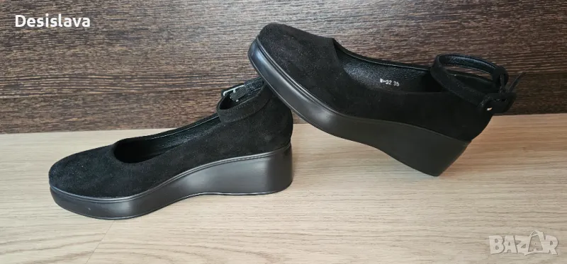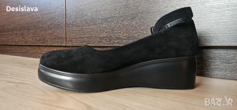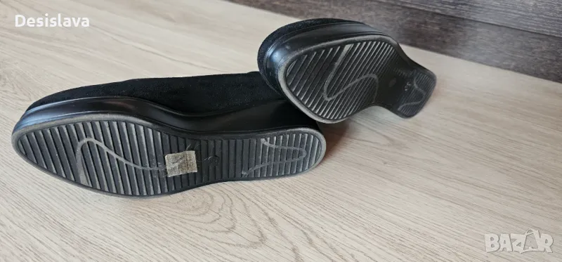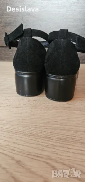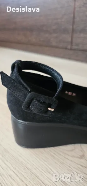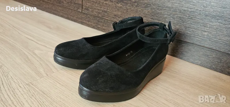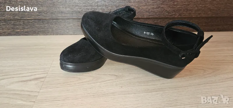 Велурени пролетно-есенни черни обувки. Носени са само 2-3 пъти. Платформата е удобна,не е като на ток.