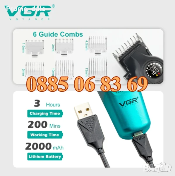 Maшинка за oформяне и подстригване VGR V-196. Изключително прецизна за професионално бръснене, подкъсяване и оформяне на косата, лицевото окосмяване и интимната зонаи батерия с дълъг живот. Тримера има закалено острие, което гарантира дълъг живот със слабо захабяване.