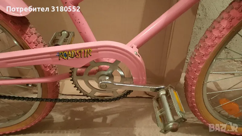 BMX Super Roadster Fashion Power 9000 с 24’x1.125 цветни гуми и масивна L рамка. С оригинални Пегове /степенки на предна вилка/. Хромирани кормило, капли, спици и курбели. Здрава и удобна седалка. Здрави грипове. С контра. Оборудван е с оригинални калници, чантичка, светлоотразители, степенка за подпиране и звънец. Много масивен, здрав и надежден /в автентичен вид/ винтидж велосипед с всички аксесоари, в перфектно техническо състояние - готов за каране. В отлично визуално състояние – видно и от снимките. За инфо - по телефона.