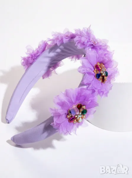 Елегантна диадема с тюл и камъни в цвят крем или лавандула → Обява 50384396