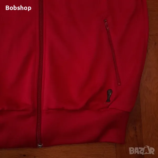Отлично състояние, оригинален продукт, размер по етикет S, материя - 85% полиестер и 15% памук, машиннобродирани лога на лицевата част, два джоба на лицевата част с ципове, ластик на ръкавите и кръста, ципове ykk, произведено в Китай.