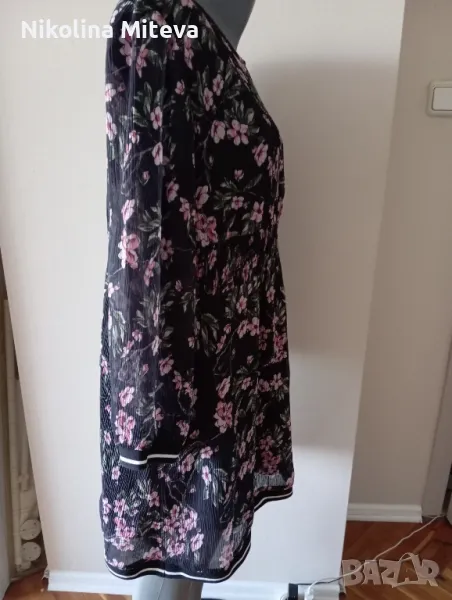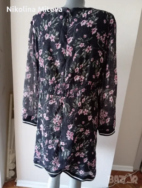 Роклята е в отлично състояние, 100процента полиестер,тънка и много ефирна ,с черна подплата.Размерите са :