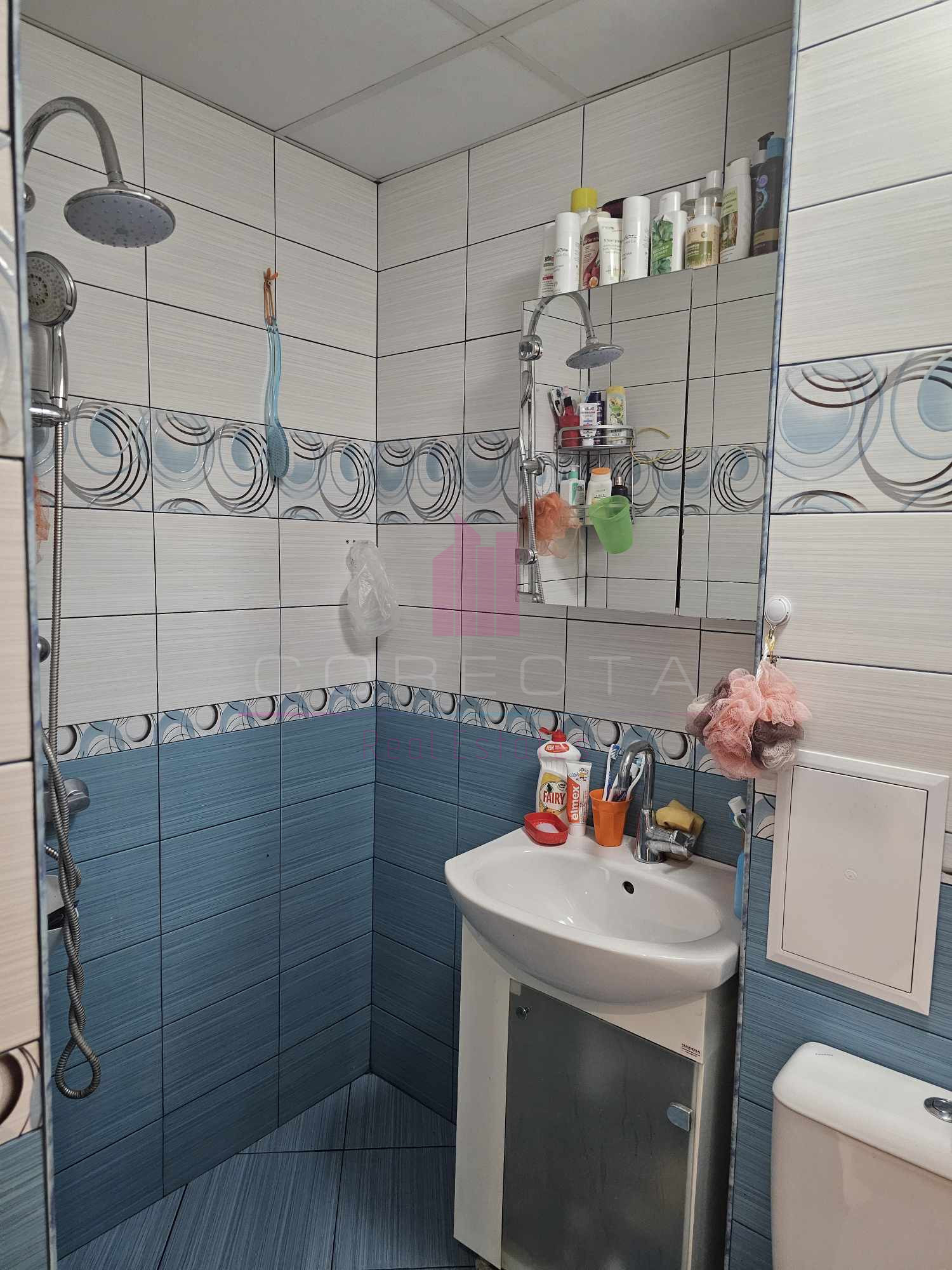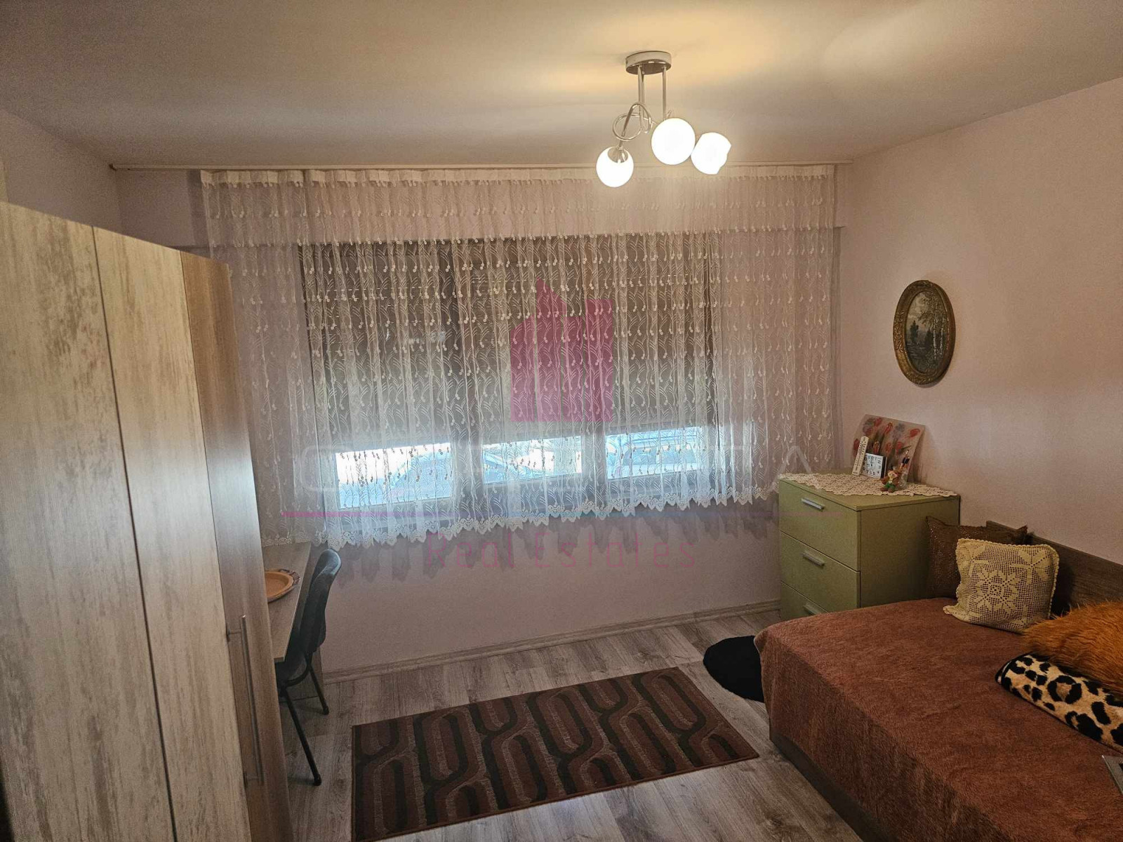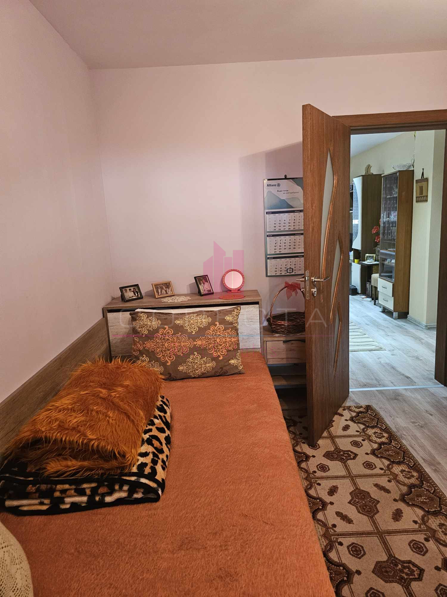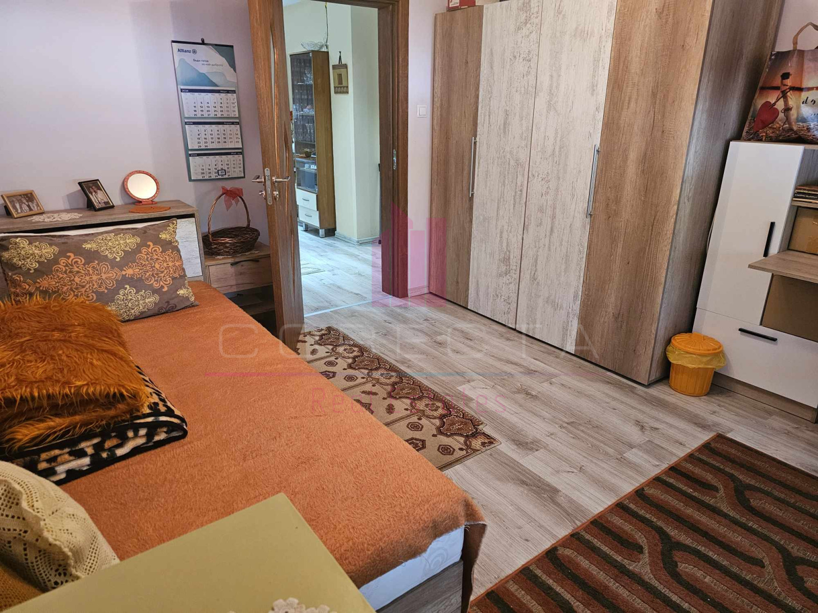 КОРЕКТА ЕСТЕЙТ има удоволствието да Ви представи изключително уютен, тристаен апартамент, находящ се на тихо и спокойно място, в район с много зеленина, в близост до училище и детска градина. Жилището е разположено на първи етаж в панелен блок и е със следното разпределение: кухня, голям хол с преход към детска стая, спалня, двойна остъклена тераса, Г- образен коридор, баня с тоалетна и втора по-малка тераса към кухнята. Направен е качествен, основен ремонт, като ВиК и ел.инсталациите са подменени, дограмата навсякъде е PVC, интериорните врати са от МДФ, поставена е блиндирана входна врата, кухнята е с вградени електроуреди (фурна, стъклокерамични котлони, аспиратор, хладилник,) стените са с