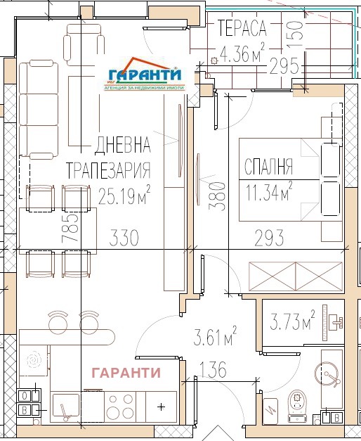 ✅ Оферта 8194. Агенция Гаранти представя на Вашето внимание двустаен,непреходен апартамент, намиращ се в новострояща се малка, жилищна кооперация в квартал Остромила.