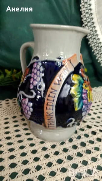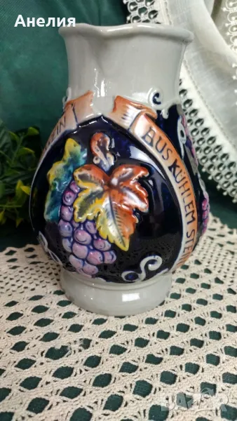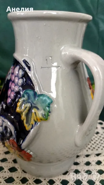 Кана - прекрасна,нова керамична ,с грозде и надпис.Много цветна с вместимост 1 литър.