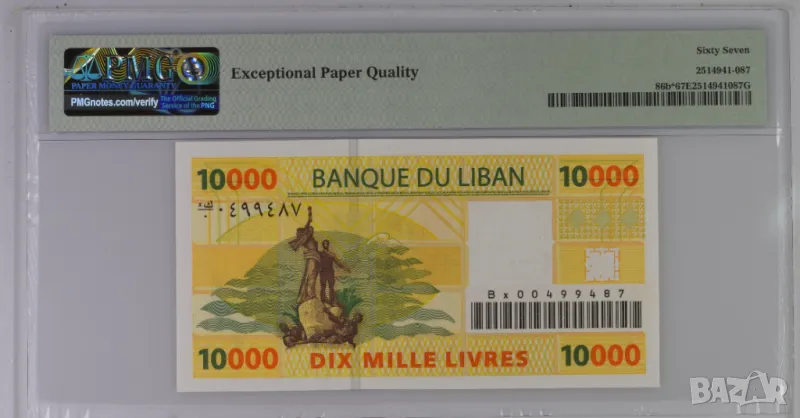 Ливан 10000 ливри 2008 година  PMG 67, снимка 1 - Нумизматика и бонистика - 50385480 Ливан 10000 ливри 2008 година  PMG 67, снимка 2 - Нумизматика и бонистика - 50385480 1/2