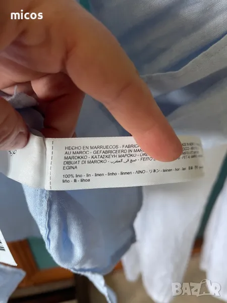 Massimo Dutti,нова 100 % лен(страхотен лен) риза,лежерна. Размер М. Цвят-нежно син(бебешко синьо). Отстрани с малки цепки.Закупена за 150 лв.
