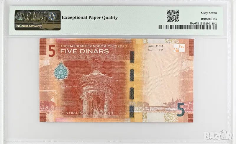 Йордания 5 динара  2022 година  PMG 67, снимка 1 - Нумизматика и бонистика - 50386113 Йордания 5 динара  2022 година  PMG 67, снимка 2 - Нумизматика и бонистика - 50386113 1/2