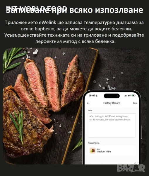 По време на печенето приложението eWeLink ще записва температурата,
