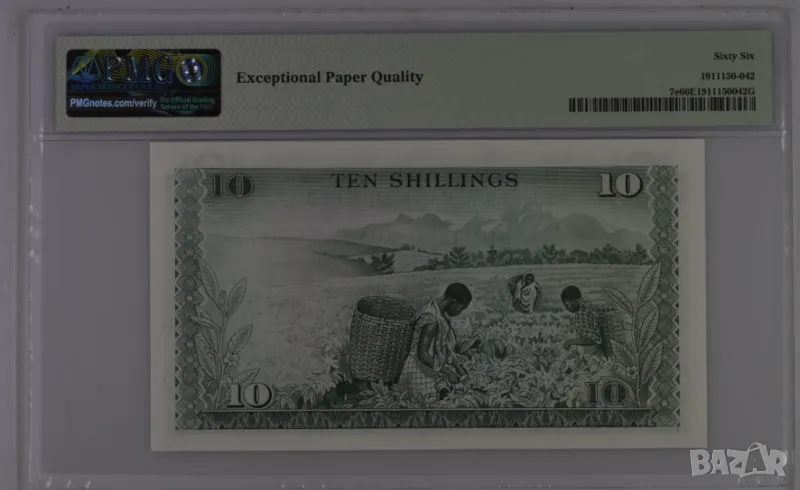 Кения 10 шилинга 1974 година PMG 66, снимка 1 - Нумизматика и бонистика - 50386281 Кения 10 шилинга 1974 година PMG 66, снимка 2 - Нумизматика и бонистика - 50386281 1/2