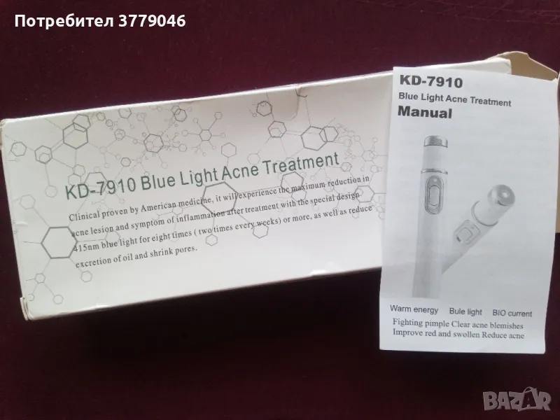 KD-7910 Лечение на акне със синя светлина. Борба с пъпките. Изчистване на петна от акне. С оригинална кутия и инструкция за употреба.