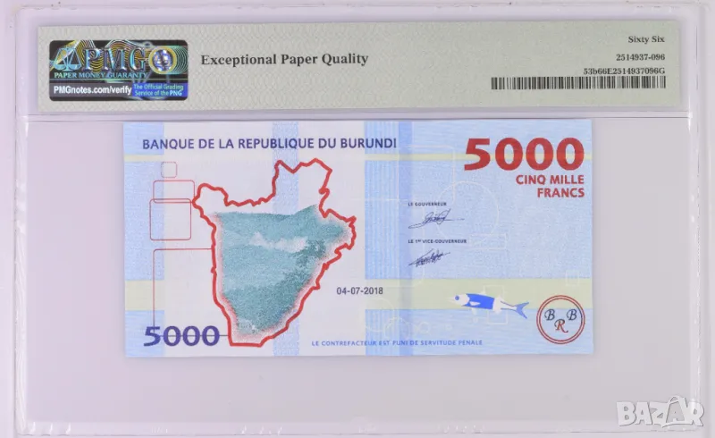 Бурунди 5000 франка 2018 година PMG 66 → Обява 50386618