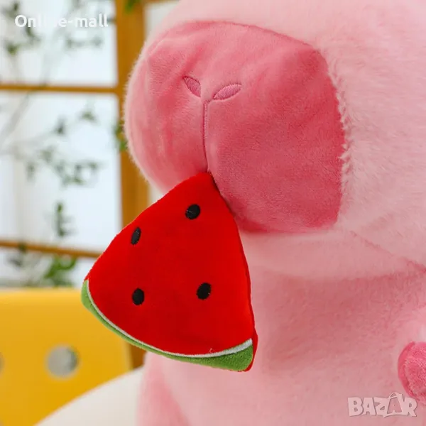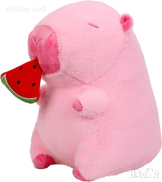 Очарователна и мека плюшена капибара, която държи резен диня – перфектният подарък за малки и големи! С височина 25 см, изработена от висококачествен плюш, тази сладка играчка носи усещане за уют и усмивка на всяко лице. Подходяща е както за игра, така и за декорация в детската стая. Перфектен приятел за гушкане!