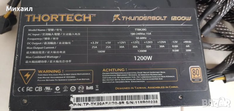 Компютърно захранване - Thortech Geil THUNDERBOLT 1200W 80 plus gold, снимка 1 - Захранвания и кутии - 50386861 Компютърно захранване - Thortech Geil THUNDERBOLT 1200W 80 plus gold, снимка 2 - Захранвания и кутии - 50386861 Компютърно захранване - Thortech Geil THUNDERBOLT 1200W 80 plus gold, снимка 3 - Захранвания и кутии - 50386861 Компютърно захранване - Thortech Geil THUNDERBOLT 1200W 80 plus gold, снимка 4 - Захранвания и кутии - 50386861 1/4