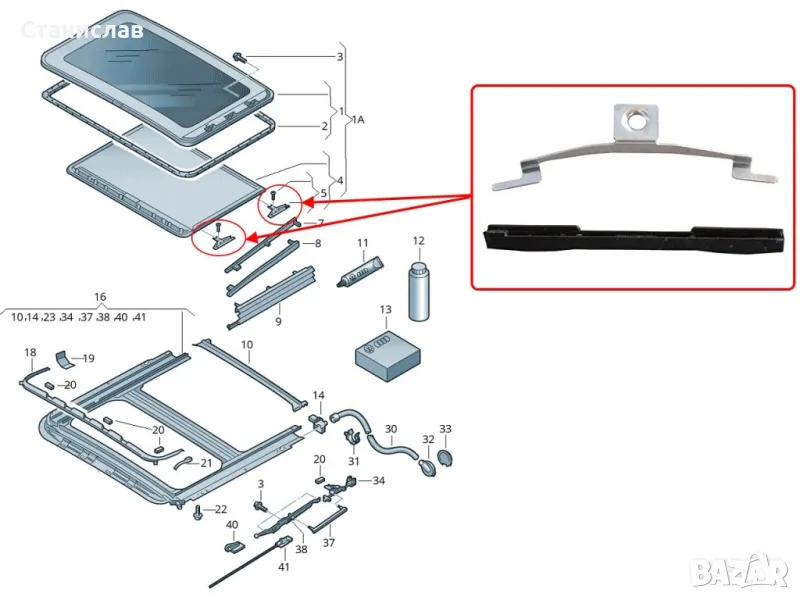 VW Touareg 7L Водач за люк , снимка 1 - Части - 50387030 VW Touareg 7L Водач за люк , снимка 2 - Части - 50387030 VW Touareg 7L Водач за люк , снимка 3 - Части - 50387030 1/3