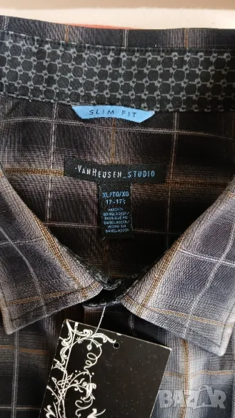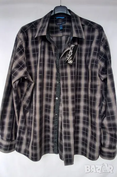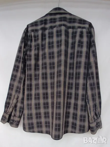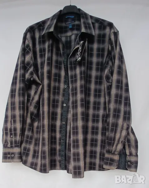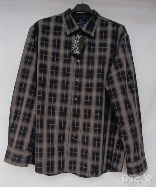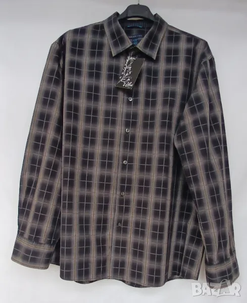 Мъжка луксозна цветна риза с дълъг ръкав. 100% памук. Размер XL, отговаряш на номер 52. Леко вталена. Обиколка на гърдите 128 см. Разцветка: черно на бежови и сиви квадрати. Подходяща за всички възрасти мъже. Много е стилна и практична. Цена 18лв.