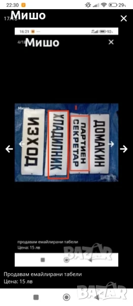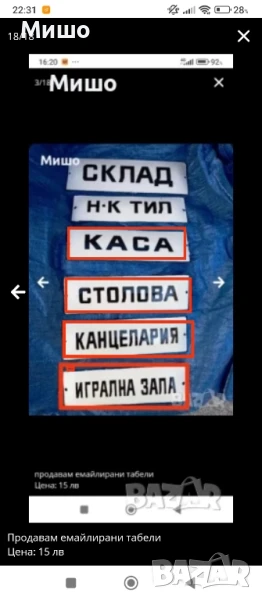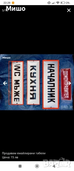 Продавам емайлирани табели от 15 до 55 лв. Игрална зала, Партиен секретар,Каса,Столова,Канцелария,Баня-жени,Баня- мъже,Началник,Кухня и Хладилник-продадени.