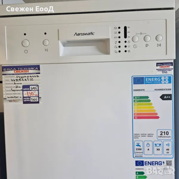 СВОБОДНОСТОЯЩА МИЯЛНА МАШИНА 45 СМ. ЗА 9 КОМПЛЕКТА, ЕНЕРГИЕН КЛАС А+ И КОНСУМАЦИЯ НА ВОДА 9 ЛИТРА