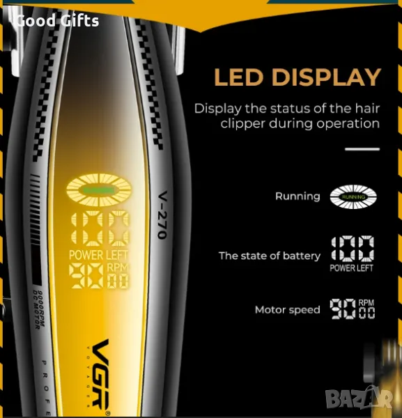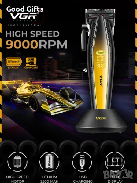 Машинка за подстригване VGR V-270 – 9000RPM, LED дисплей, професионална