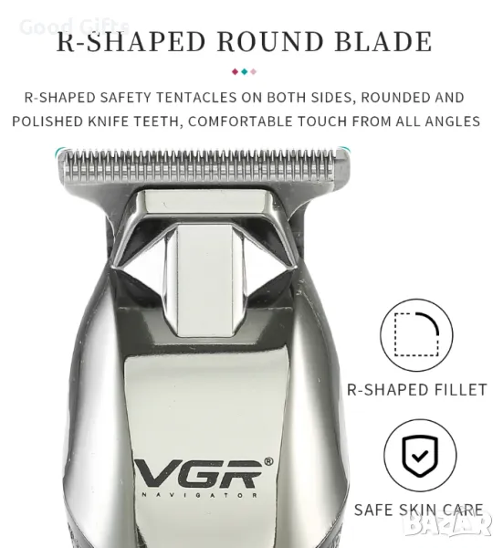VGR V-171 е стилна и прецизна машинка за подстригване, която съчетава висока ефективност и модерен дизайн. С компактно тяло, изработено с удобен захват и метални акценти, този модел предлага комфорт при всяко използване. Острите ножчета от неръждаема стомана са с R-образна форма за безопасно и гладко подстригване, без дразнене на кожата.