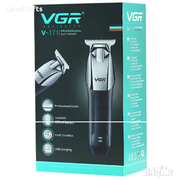 Машинка за подстригване VGR V-171 – Интелигентен дизайн, остриета от неръждаема стомана, до 240 мин. работа