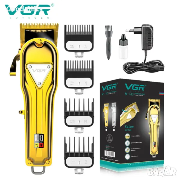Професионална машинка за подстригване VGR V-140 – Метален корпус, 300 мин. работа, LED дисплей