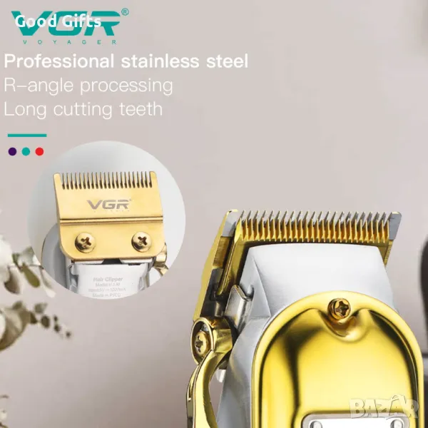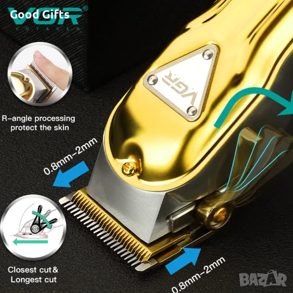 VGR V-140 е елегантна и изключително издръжлива машинка за подстригване, проектирана с внимание към всеки детайл. Със своя лъскав златист корпус и мощен мотор, тя осигурява професионално подстригване както у дома, така и в салон. Остриетата от неръждаема стомана с R-образна обработка гарантират безопасност за кожата и прецизен срез.