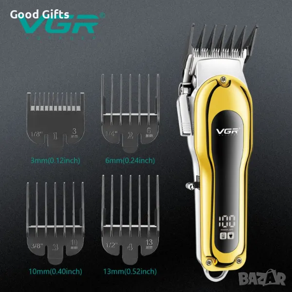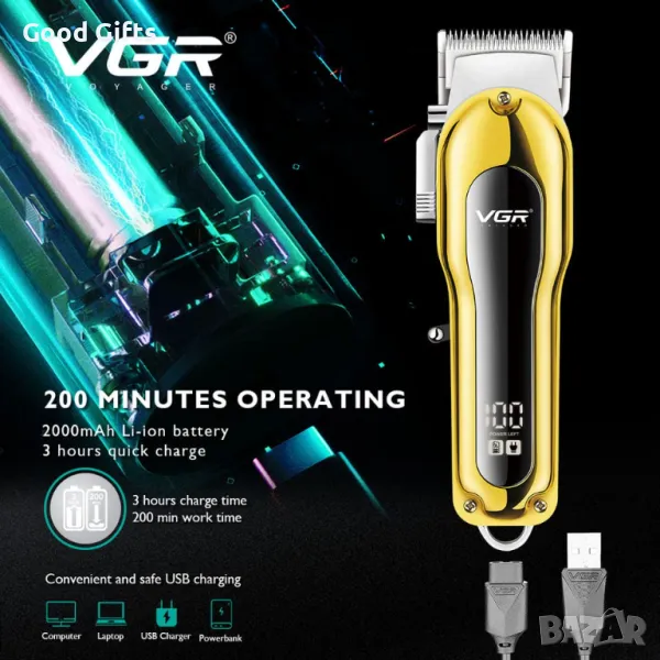 Машинка за подстригване VGR V-680 – 200 минути работа, 2000mAh батерия, LED дисплей, метален корпус