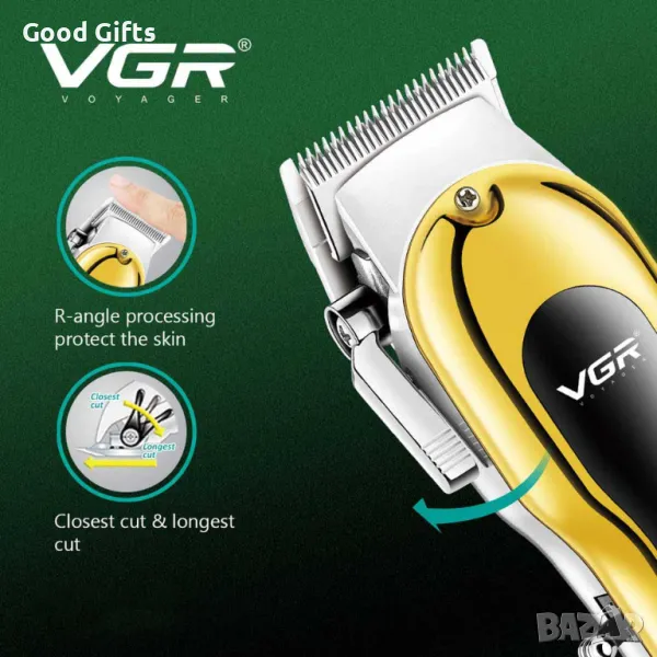 Машинката за подстригване VGR V-680 е професионално решение за всеки, който търси прецизно подстригване, стил и издръжливост. Със своя елегантен златен дизайн и мощен мотор, тя е подходяща както за домашна, така и за салонна употреба. Металният корпус и остриетата от неръждаема стомана с обработка на ръбовете (R-тип) гарантират безопасност за кожата и дълъг живот на уреда.