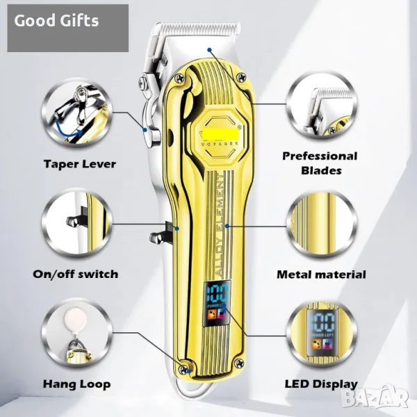 VGR V-672 Професионална машинка за подстригване, златиста, 2000mAh, LED дисплей