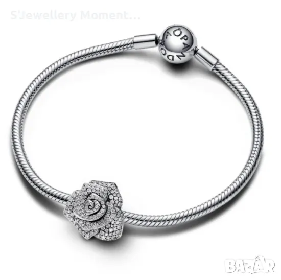 Сребърни талисмани Pandora Sparkling Rose in Bloom Oversized Charm. Колекция 2024.