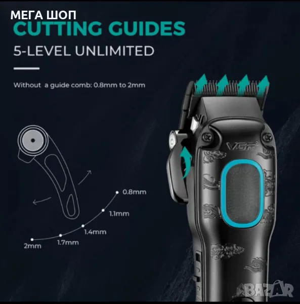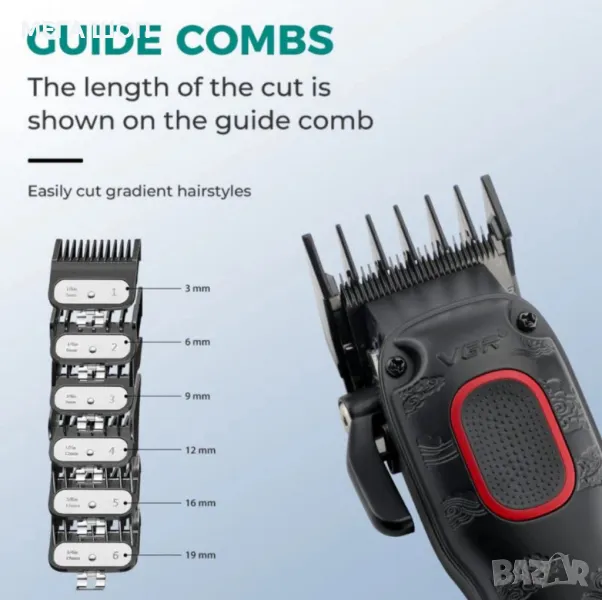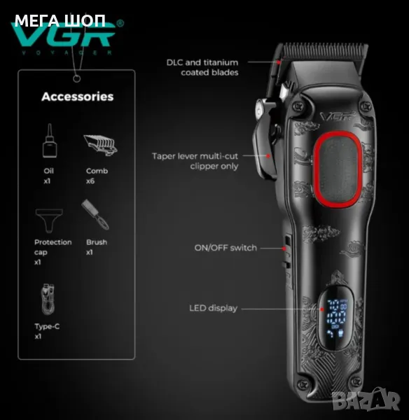 Професионална машинка за подстригване VGR V-016 – Метален корпус, BLDC мотор, дълга → Обява 50389767