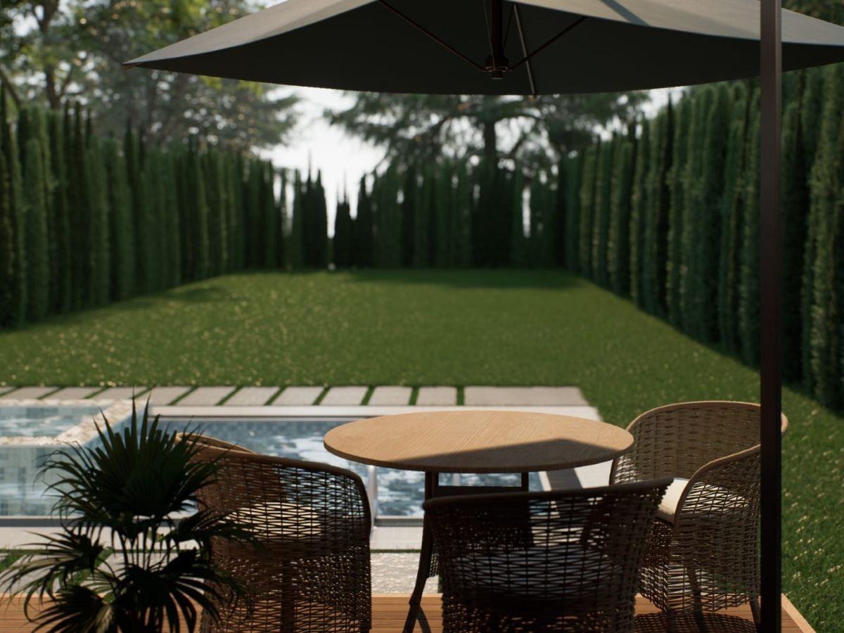 Капково напояване по цялата ограда и поливна система за райграс и насаждения, което осигурява лесна поддръжка на зелените площи;