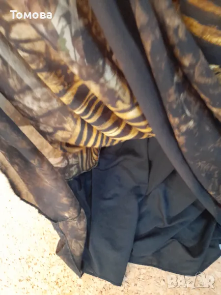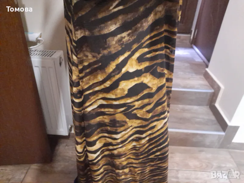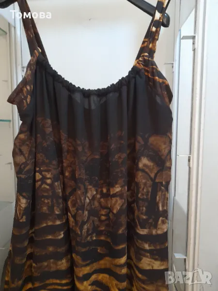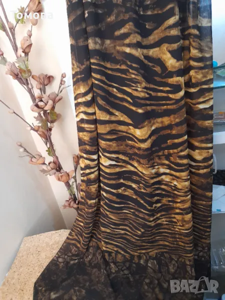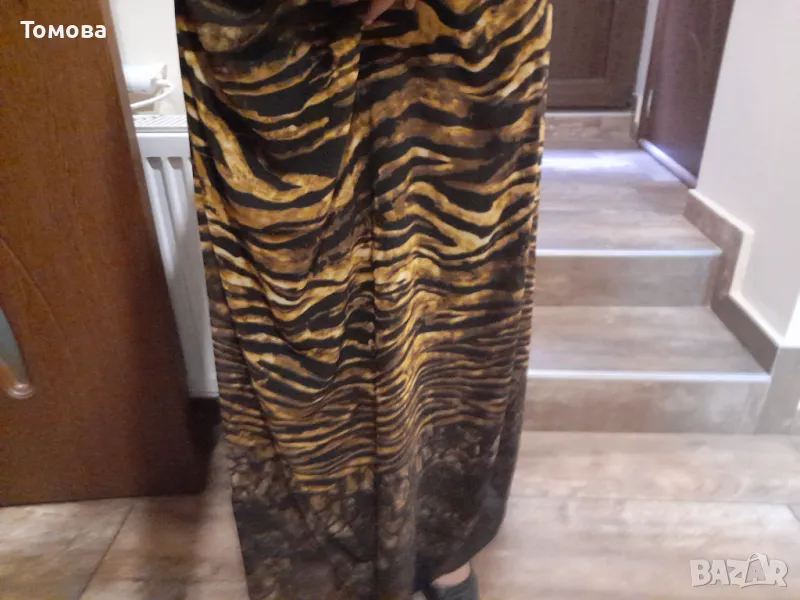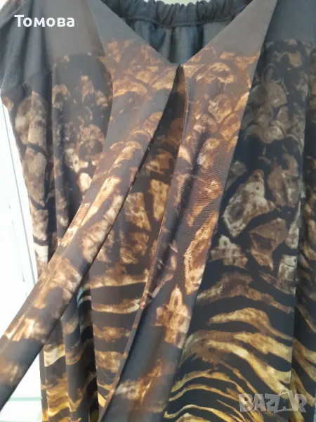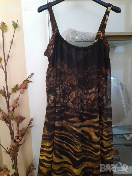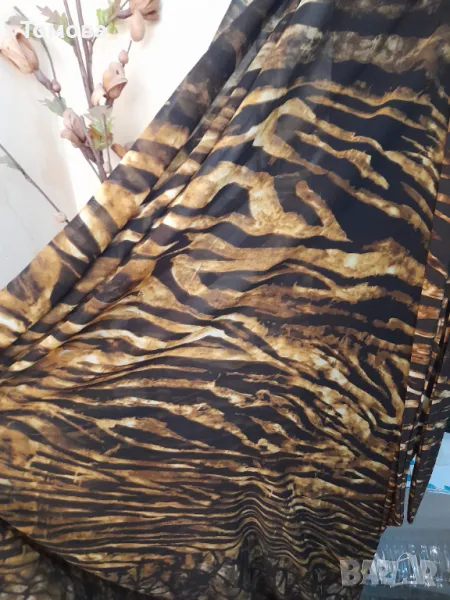 Оригинална рокля на roberto cavalli размер ХЛ, Обличана веднъж по повод. Свободно стоящ модел в тигрови нюанси. Подплатата е до края на дължината. Ефирна и много красива !!! Възможно договаряне за цена.