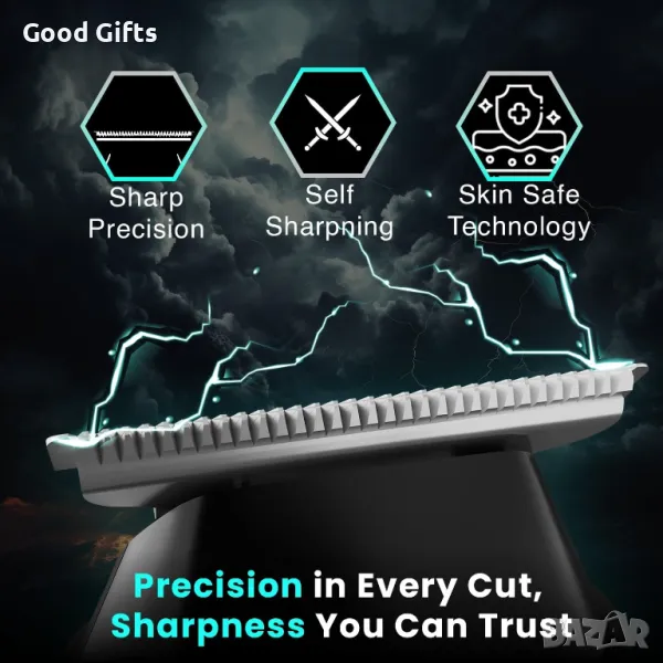 VGR V-932 е стилен и компактен мини тример, създаден за модерния мъж, който търси удобство както у дома, така и в движение. Със самонаточващи се T-образни остриета, ергономичен дизайн и технология за безопасност на кожата, този тример е идеален за прецизно оформяне на брада, мустаци и тяло.