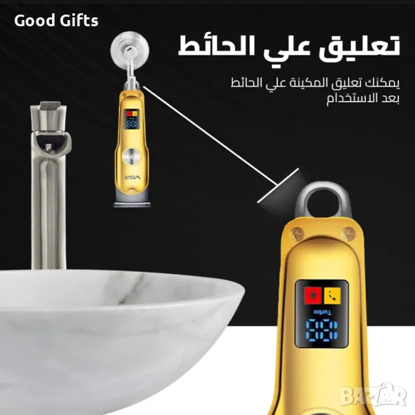 Професионалната машинка за подстригване VGR V-290 съчетава модерен дизайн, иновативни функции и максимално удобство. Със стилен златист корпус, тя впечатлява не само визуално, но и с функционалност – остриета от неръждаема стомана, LED дисплей, турбо режим и възможност за окачване на стена.