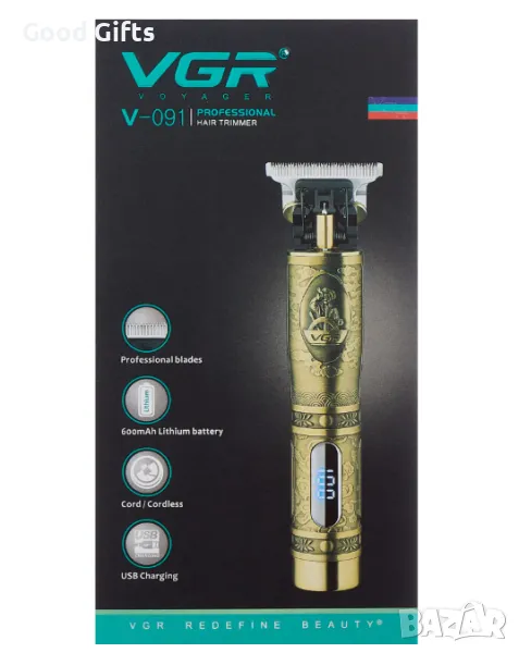 Машинка за подстригване и оформяне VGR V-091 – Професионален тример с метален корпус и LED дисплей