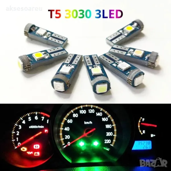 габаритни крушки за осветление на арматурно табло T5 3SMD LED супер ярък 3030
