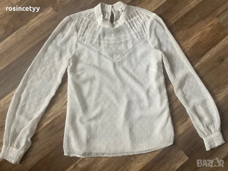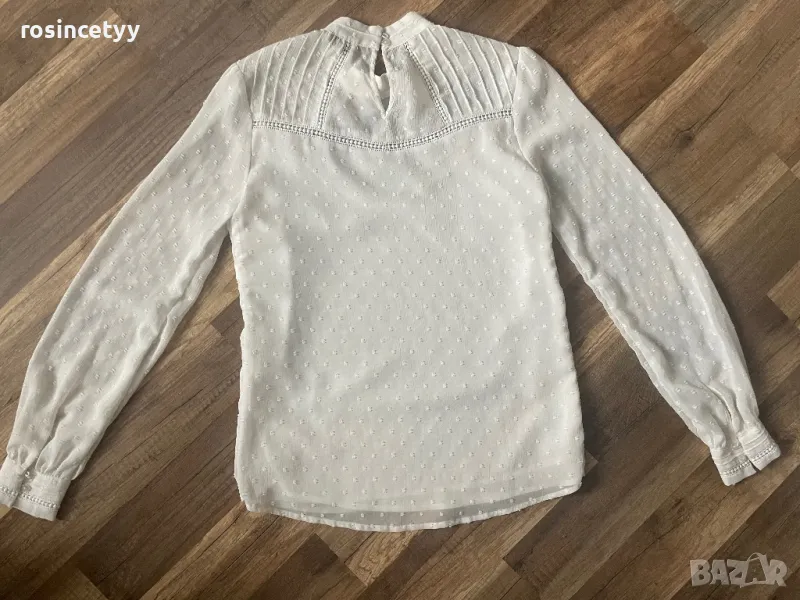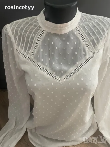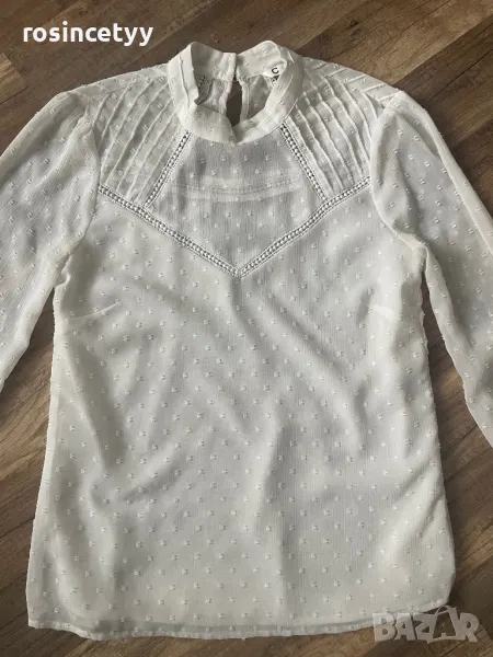 По етикет размер С. Бяла риза, ръкавите са по тънки и прозрачни,а на частта на торса има допълнителна подплата . Подходяща за топло време . Изпращам с Еконт