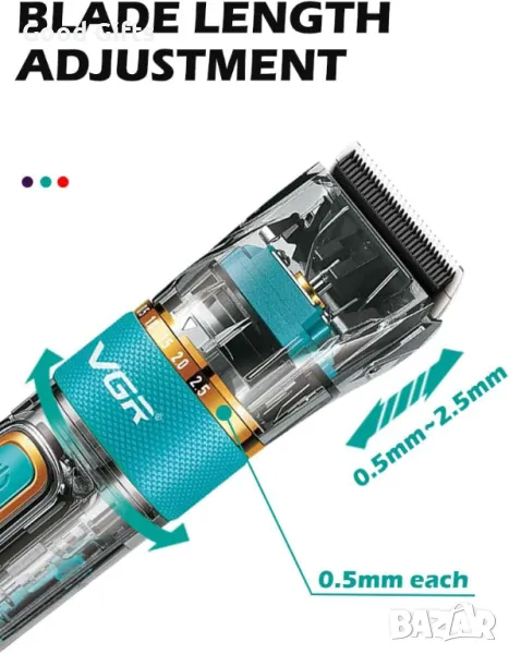 С VGR V-695 в ръка всяка прическа е мисия възможна! Уникален прозрачен корпус, интуитивен LED дисплей и водоустойчива IPX7 конструкция – това не е просто машинка, това е технологично изживяване!