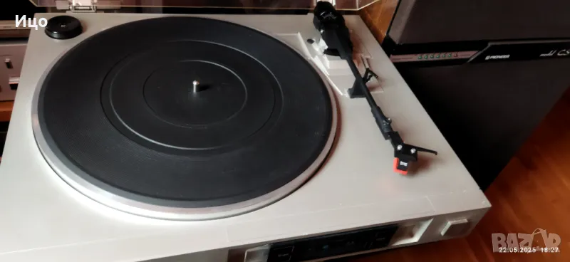 Грамофон в отличен външен вид и работно състояние.Директ драйф.Здрав и чист капак и панти.Оригинални доза и игла.Лека драскотина до надписа,снимал съм я.Лично.предаване.