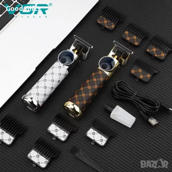 VGR V-942 е не просто машинка – това е моден аксесоар за всеки модерен мъж! С корпус в два стилни варианта (златисто или сребристо) и ефектна кожа с дизайнерски принт, тази машинка привлича вниманието още преди да започне работа.