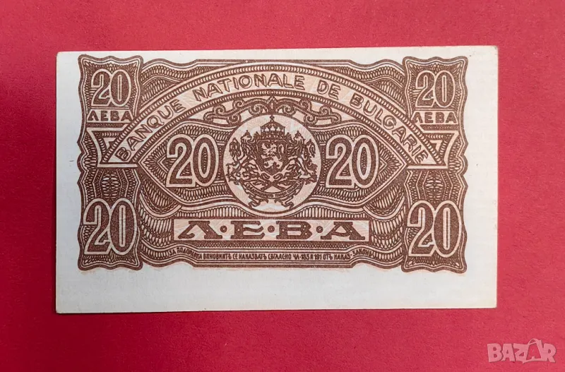 20 лева 1944 година България с кафяв номер - непрегъвана → Обява 50392888