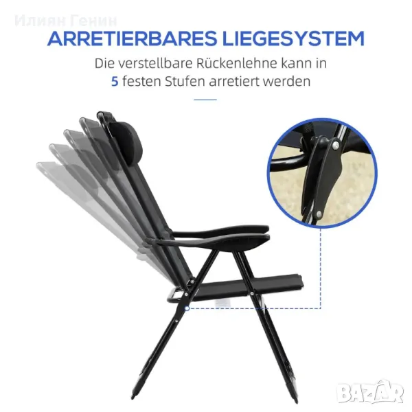 шезлонг, устойчив на атмосферни влияния, регулируема облегалка в 5 посоки, метална рамка, черен - 140.00лв.