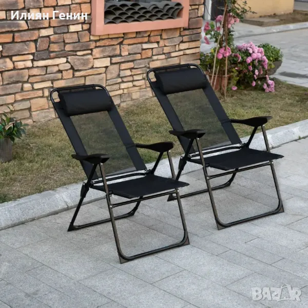 Комплект от 2 сгъваеми стола Outsunny, сгъваем шезлонг, устойчив на атмосферни влияния