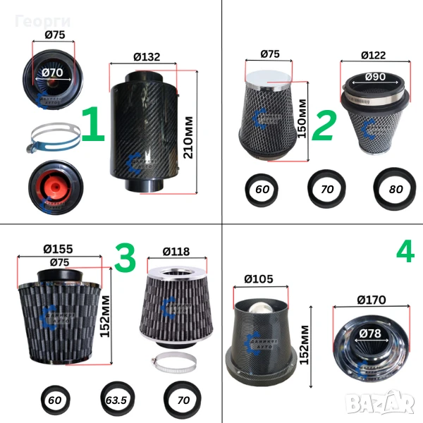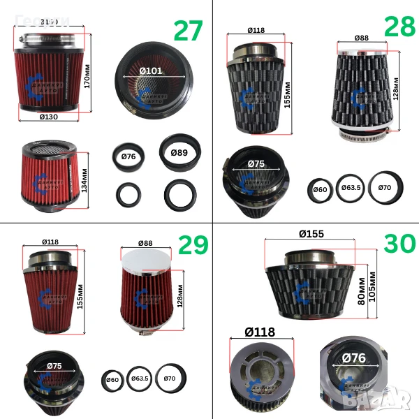 30. Спортен филтър Ф76 Ф118 Ф155 105мм карбон - 19,00 лв. ( 9,71 € )