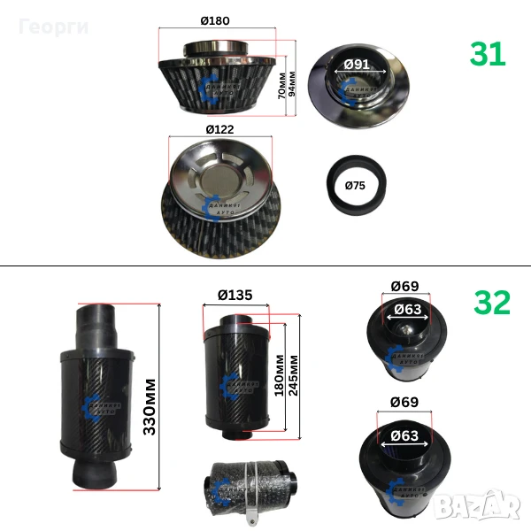 32. Спортен филтър Ф63 Ф69 Ф135 245мм - 60,00 лв. ( 30,68 € )
